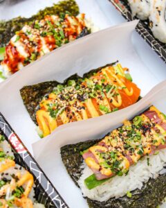 Colorful, tasty, and available at @posthtx! Stop by and get you some sushi 😍